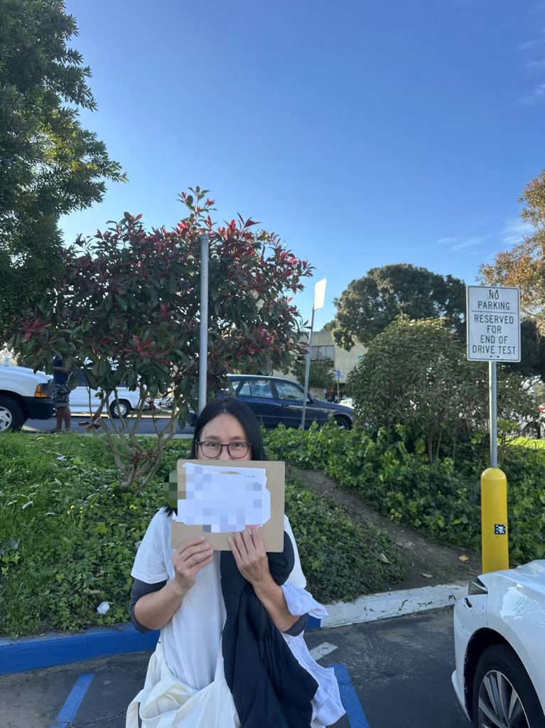 恭喜来自台湾的美女学员一次通过✅加州驾驶测试,小扣6分,在daly city dmv 、一共一节课程,教练在2小时内需要讲解交规,考试重点,同时纠正一个老司机的不好习惯,是需要非常用心的。找对教练很重要‼️。 ㊗️贺[庆祝][礼物][红包][福][烟花][爆竹]