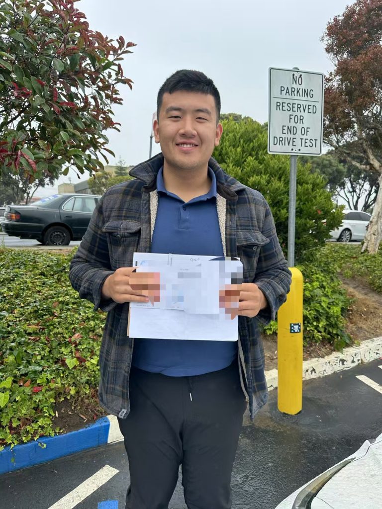 恭喜来自加拿大🇨🇦的华裔帅哥老司机一次通过加州驾驶测试,在daly city dmv ,一共一节课程,上周五考过permit。教练加急周一路考,非常丝滑一次通过✅。 非常棒,㊗️贺 [太阳][庆祝][红包][福][礼物][红包][烟花][爆竹][爆竹][福][福][烟花][太阳]